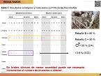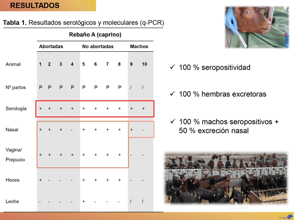 Estos rebaños tenían también una serie de diferencias epidemiológicas en cuanto a la clínica que habíamos observado en la explotación. En el caso del rebaño caprino, se observó que durante esa paridera donde tomamos las muestras se reportó una tasa de abortos del 70%, que es lo que se considera como una tasa de abortos severa. Además de los abortos, en esta explotación también se observó la muerte de animales adultos, ya a término de gestación, y también observamos el nacimiento de crías débiles, al parto, que terminaban muriendo por no ser encalostrados. Por su parte, el rebaño ovino lechero contaba con una tasa de abortos del 40%, mientras que en el rebaño de carne la tasa de abortos reportada fue del 10%. En ninguno de los dos rebaños de ovinos se reportaron otra sintomatología o clínica compatible con fiebre Q.