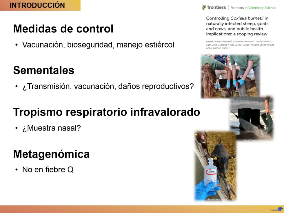 Y finalmente esta ponencia tratará de una nueva técnica que no se ha empleado hasta el momento para el estudio de la fiebre Q ni en pequeños rumiantes ni en ninguna especie, que es el uso de la metagenómica como herramienta diagnóstica.