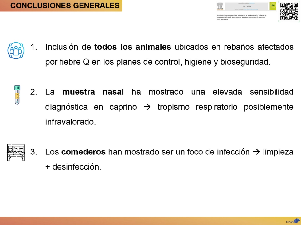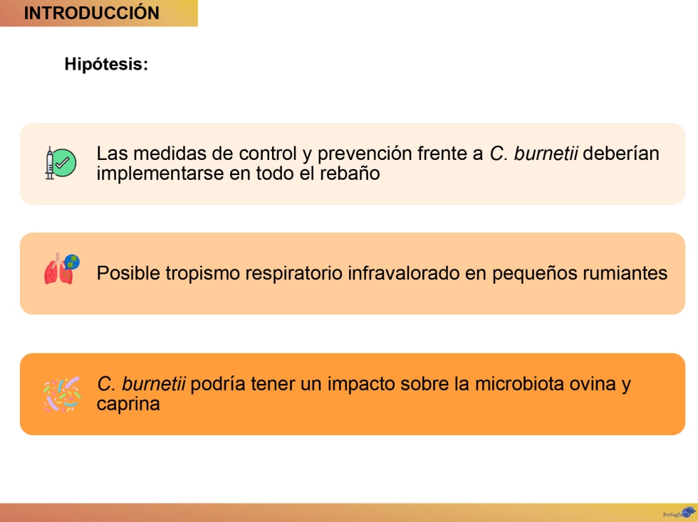 Las hipótesis para realizar este estudio son, en primer lugar, las medidas de control y prevención frente a Coxiella burnetii y que deberían implementarse en todo el rebaño, independientemente de sexo, edad, clínica… Podría haber un posible tropismo respiratorio infravalorado hasta el momento. Y, finalmente, C. burnetii podría tener un impacto sobre la microbiota de animales infectados por fiebre Q.