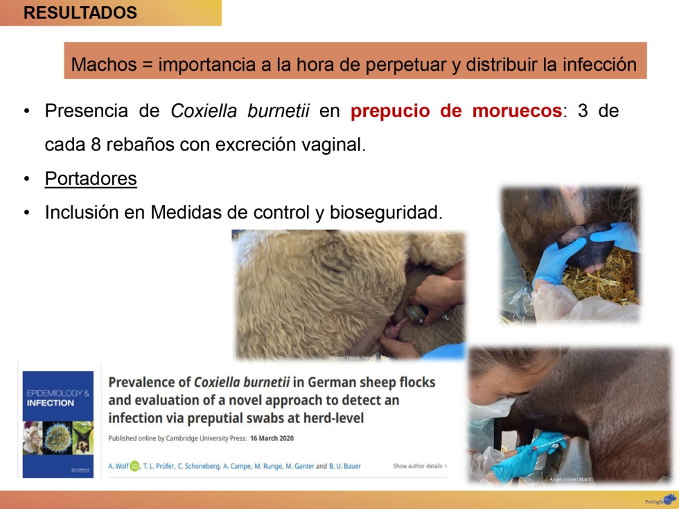 Los machos tienen importancia a la hora de mantener, perpetuar y distribuir la infección dentro de los rebaños ovinos y caprinos. Ya ha sido reportada la detección de Coxiella burnetii a nivel de prepucio en moruecos. Es verdad que por el momento no podemos hablar de una infección en los machos, pero sí lo que podemos decir es que pueden actuar como portadores de la enfermedad y distribuirla en los rebaños. En las explotaciones de monta natural, sería un riesgo a tener en cuenta. Por tanto, deben incorporarse a las medidas de control y prevención en los planes frente a fiebre Q.